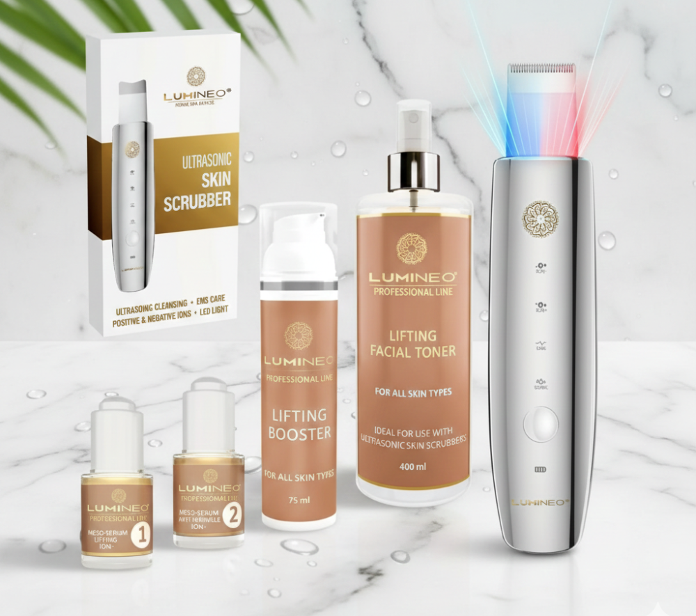 LUMINEO kavitacinis pilingas 5in1 – MEGA rinkinys (tonikas, 2 serumai, kremas)