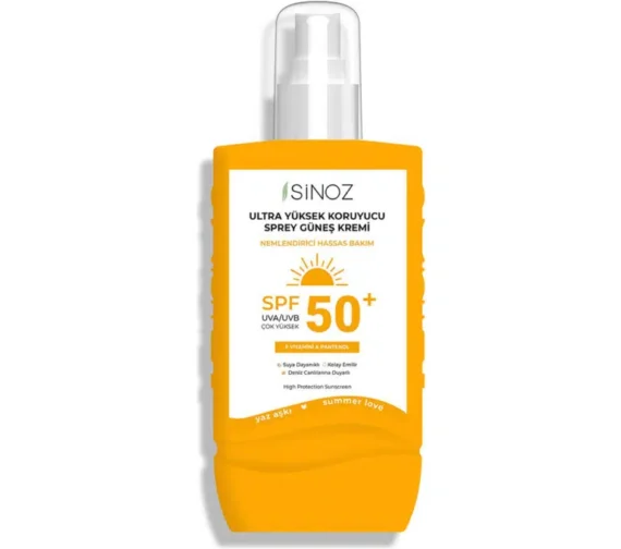 SINOZ apsauginis veido kremas nuo saulės SPF50 purškiamas – lengva ir neriebi priemonė, apsauganti odą nuo UVA/UVB spindulių ir išlaikanti drėgmės balansą.