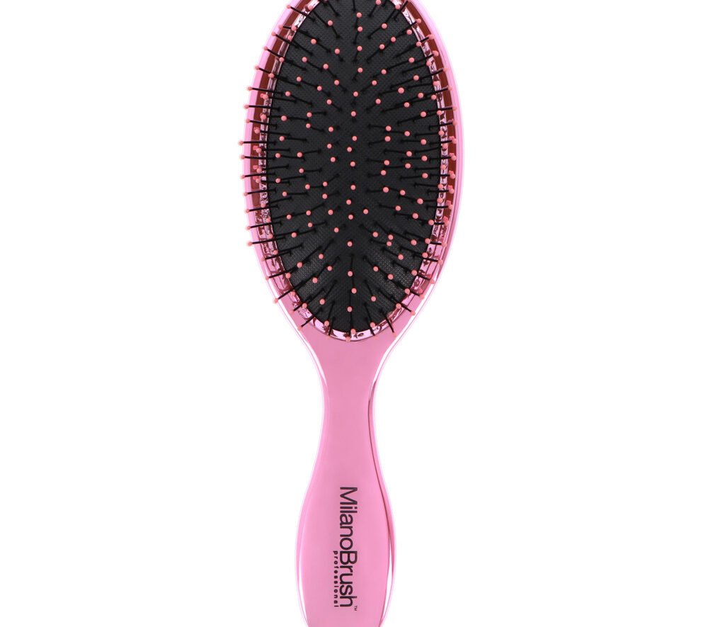 MILANOBRUSH GIRL NEXT DOOR – švelnus ir efektyvus plaukų šepetys su lankščiais nailoniniais šereliais, skirtas visų tipų plaukams ir priauginamoms sruogoms. Mažina plaukų lūžinėjimą, palengvina šukavimą ir suteikia plaukams glotnumo bei natūralaus žvilgesio.
