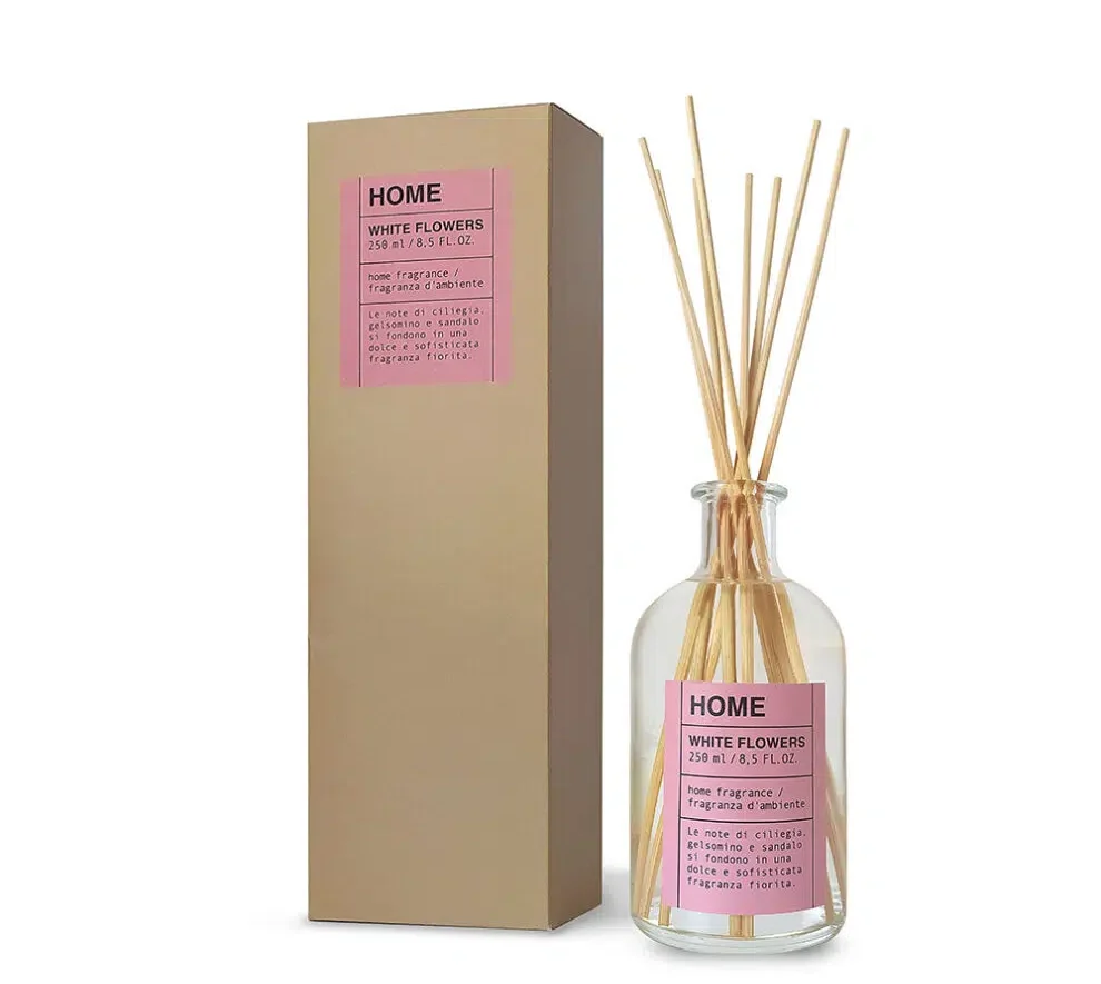 LINEA HOME White Flowers – švelnus, gėlių aromato kupinas kvapas su vyšnios, jazmino ir santalmedžio natomis. Sukuria lengvą, harmoningą ir raminančią atmosferą jūsų namuose.