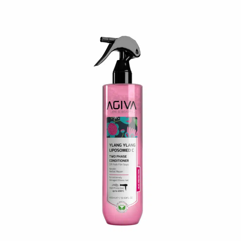 AGIVA YLANG YLANG LIPOSOMED C dvifazis purškiamas kondicionierius (400 ml) – pažangi plaukų priežiūros priemonė, skirta pažeistiems, silpniems ir gyvybingumą praradusiems plaukams. Dėl unikalios dvifazės formulės su augaliniu keratinu ir Liposominio vitamino C kompleksu, kondicionierius atstato plauko struktūrą, saugo nuo karščio poveikio ir suteikia šilkinio švelnumo.