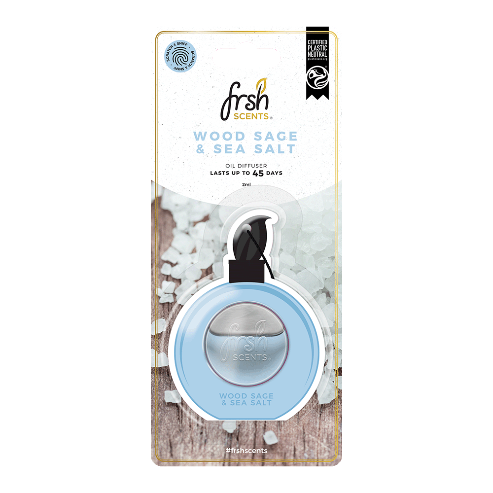 FRSH SCENTS pakabinamas kvapas WOOD SAGE & SEA SALT, 1 vnt – tai gaivus ir modernus aromatas, įkvepiantis laisvės, švaros ir natūralumo pojūtį. Šalavijų, jūros druskos ir šiltų medienos natų derinys sukuria lengvą, bet išraiškingą kvapą, kuris neapsunkina, o subtiliai atgaivina aplinką.