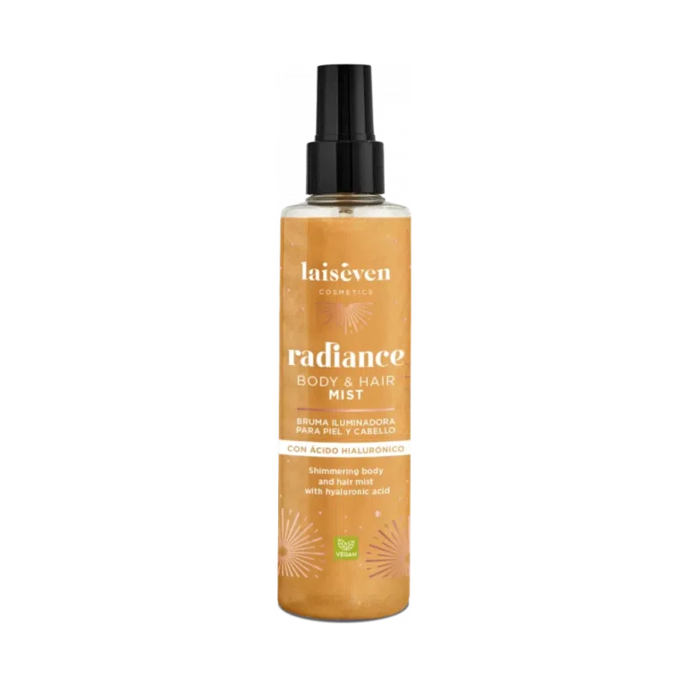 LAISEVEN RADIANCE BODY & HAIR MIST – tai švytėjimo, gaivumo ir drėgmės kupina priemonė, kuri vienu metu puoselėja tiek odą, tiek plaukus.