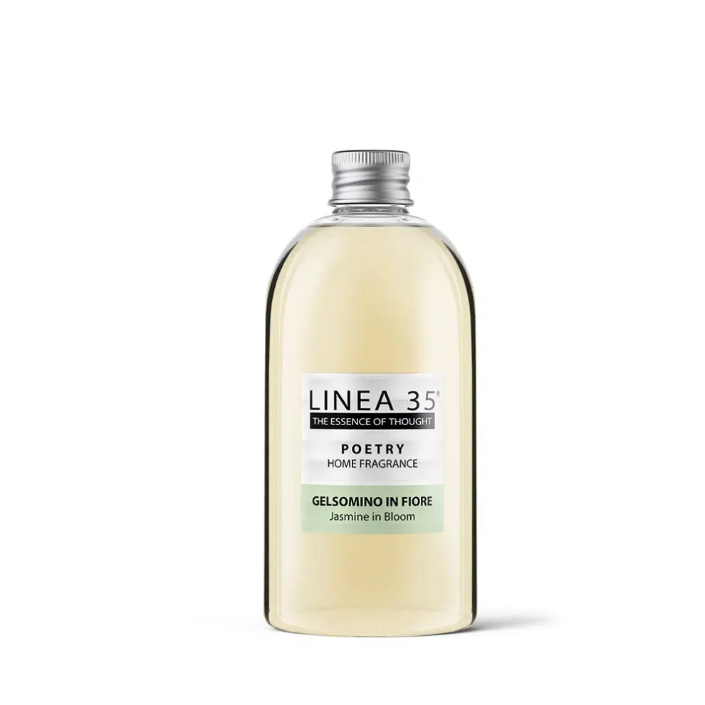 LINEA 35 Gelsomino in Fiore namų kvapų papildymas – tai subtilus kontrastų kvapas, kuriame gaivumas pereina į šilumą, o gėlių elegancija susilieja su jausmingais, ilgai išliekančiais akordais.