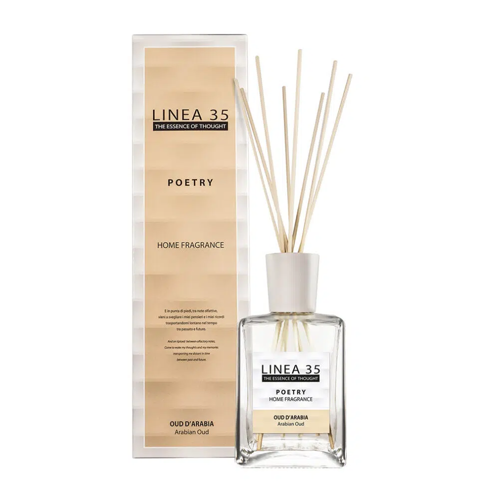 LINEA 35 OUD D’ARABIA kvapų difuzorius – tai intymi kelionė per rytietiškų kvapų pasaulį, kur saulės nutvieksti citrusai susitinka su šiltais medienos ir prieskonių tonais. Šis aromatas skleidžia prabangos, paslaptingumo ir jaukios tylos pojūtį, užpildydamas erdvę subtiliu išskirtinumo dvelksmu.