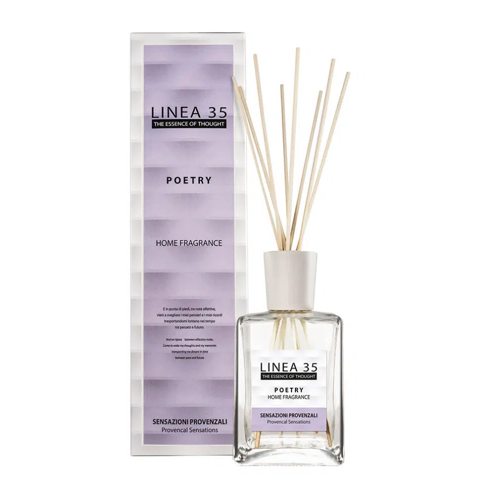 LINEA 35 SENSAZIONI PROVENZALI kvapų difuzorius – tai gyvybingas ir harmoningas aromatas, nukeliantis į saulės nutviekstą Viduržemio jūros pakrantę, kur ore sklando žolelių, prieskonių ir žydinčių krūmų kvapai. Šis kvapas suteikia šviežumo, laisvės ir natūralios energijos pojūtį, pripildydamas namus šviesos ir šilumos atmosfera.