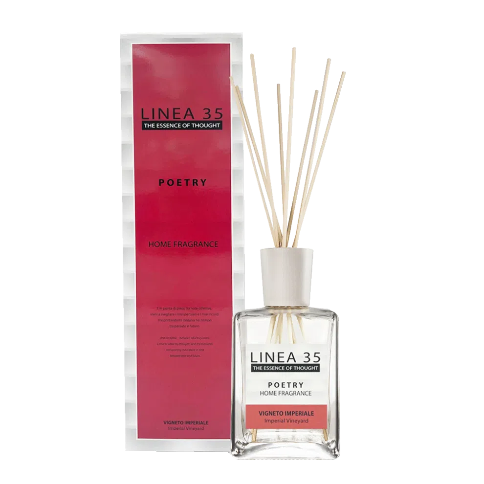 LINEA 35 VIGNETO IMPERIALE kvapų difuzorius – tai saldžios nostalgijos ir elegancijos susiliejimas, primenantis pasivaikščiojimą uogų sodu vasaros pavakarę. Kvapas skleidžia brandžių vaisių, švelnių žiedų ir šiltos medienos dermę, sukuriant jaukų ir romantišką jausmą namuose.