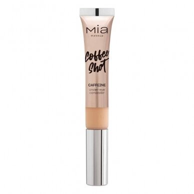 MIA MAKEUP maskuojamoji priemonė COFFEE SHOT CONCEALER – itin gerai dengianti skysta maskuojamoji priemonė. Ji veiksmingai maskuoja netobulumus, paslepia tamsias dėmes, poras, smulkias raukšleles ir raukšles. Dėl kofeino praturtintos formulės ši priemonė veiksmingai koreguoja maišelius po akimis ir tamsius ratilus, suteikdama gaivų ir atjaunintą įvaizdį. COFFEE SHOT CONCEALER išlygina akių kontūrą, spalvos nelygumus ir suteikia natūralų rezultatą. Lengvai formuojama tekstūra puikiai padengia, paryškina ir suvienodina veido spalvą, tinka visų tipų odai.