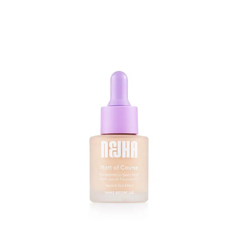 NEJHA MATT OF COURSE (P06 Caramel) – tai lengvos tekstūros, vidutinio maskavimo kreminė pudra, kuri natūraliai suvienodina odos toną, suteikia matinį efektą ir padeda sumažinti porų matomumą.