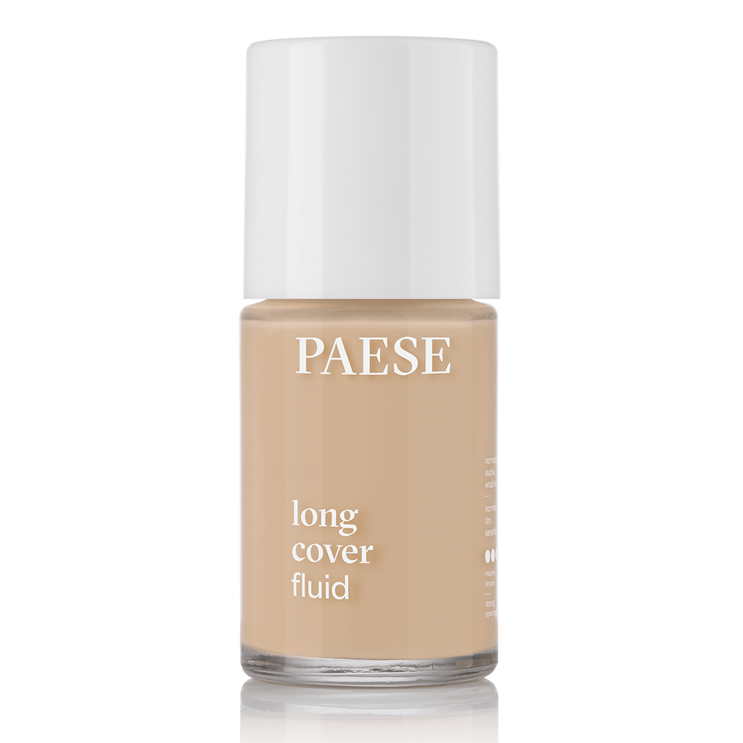 PAESE LONG COVER FLUID 1.5 – ilgai išliekanti kreminė pudra su dideliu maskavimu. Prisitaiko prie odos tono, drėkina, ramina ir suteikia natūraliai švytintį efektą. Sudėtyje – vitaminai A, C, E, karičių sviestas ir vitaminas B5. Su SPF 6 apsauga.