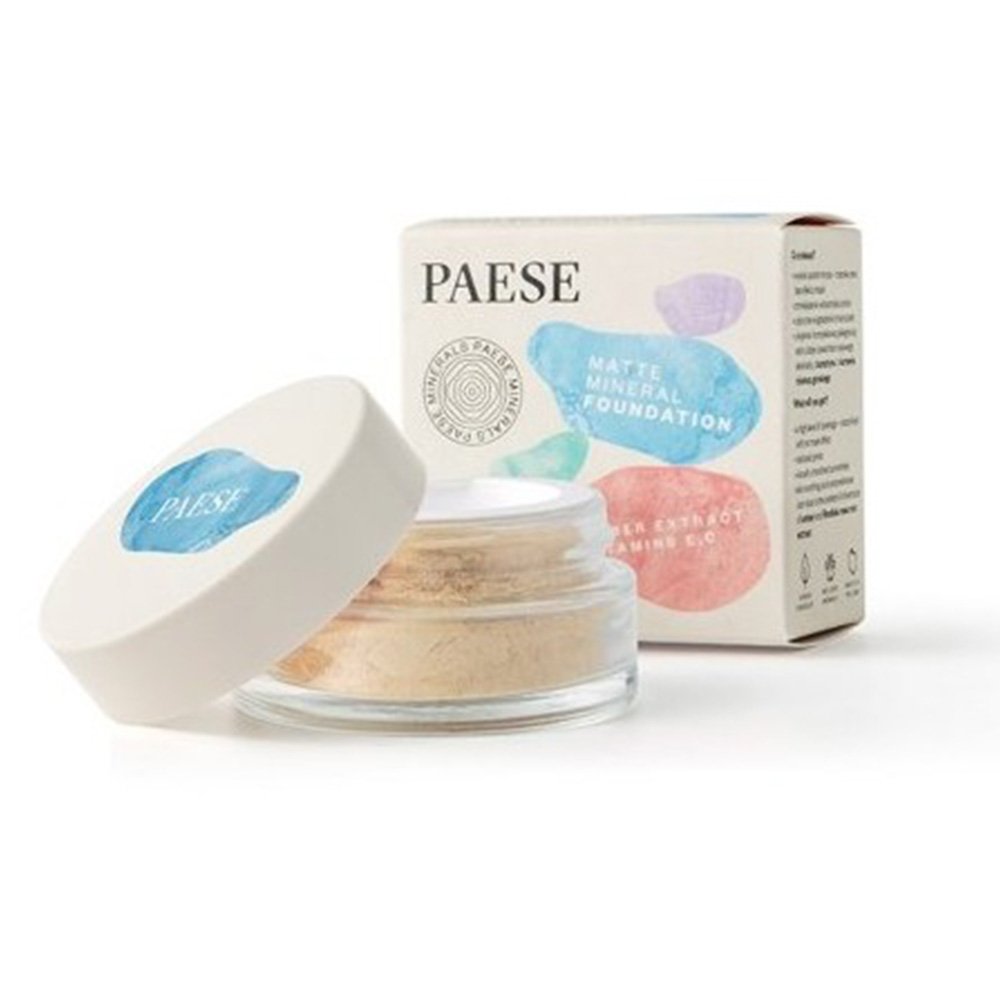 PAESE MINERALS matinė mineralinė pudra 101W – 99% natūralios sudėties biri pudra, suteikianti aukštą maskavimą, matinį efektą ir ilgalaikį išsilaikymą. Ramina odą, mažina porų ir netobulumų matomumą. Puikiai tinka jautriai odai.