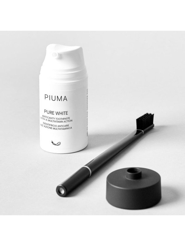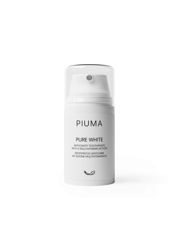 PIUMA PURE WHITE – tai antioksidacinė ir apsauginė dantų pasta, sukurta kasdienei burnos higienai ir dantų priežiūrai. Formulė praturtinta A, B ir C vitaminais, kurie padeda stiprinti dantis bei palaikyti sveikas dantenas.