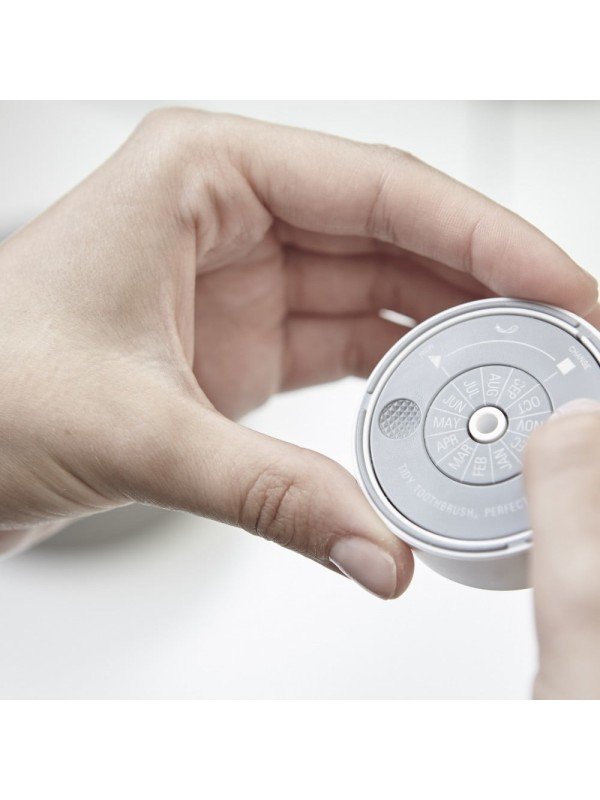 Pagrindas leidžia šepetėlį patogiai pastatyti ant bet kokio paviršiaus. Patentuotas dizainas apsaugo nuo vandens kaupimosi, o integruotas kalendorius primena, kada reikėtų pakeisti dantų šepetėlį.