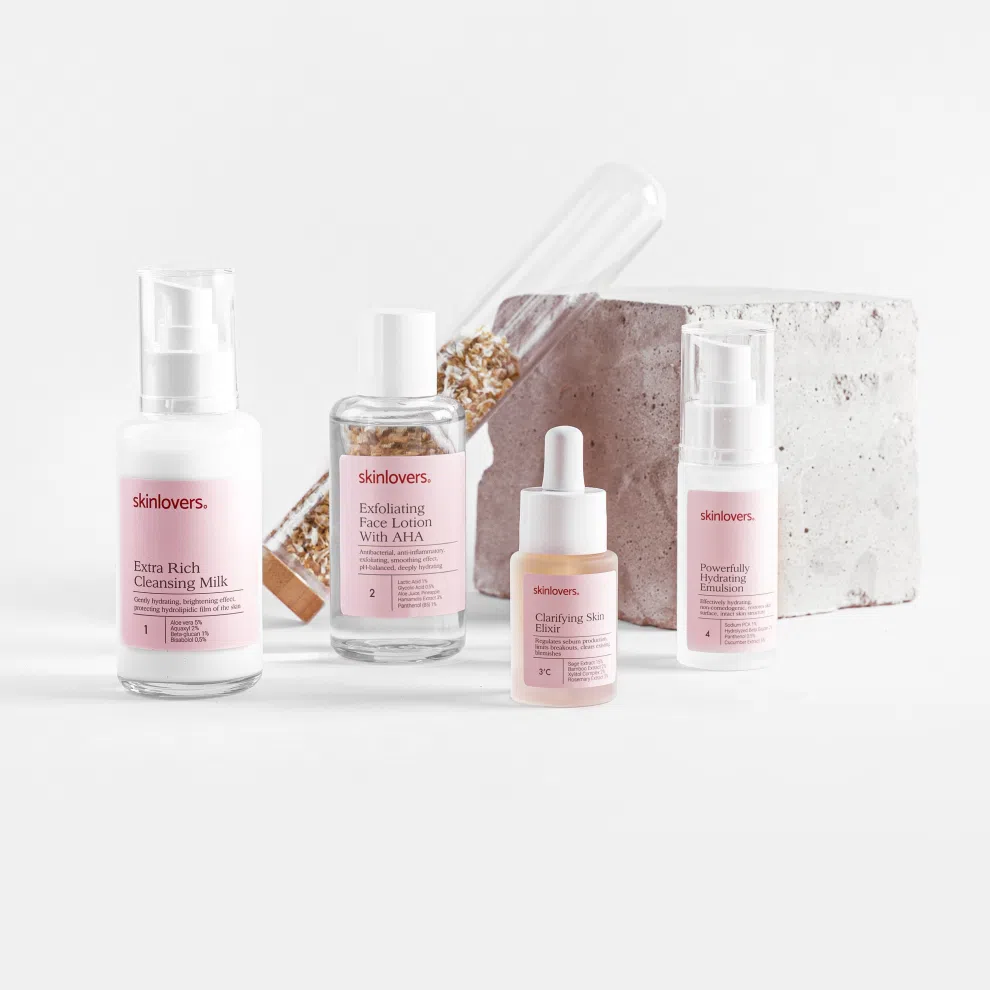 Subalansuotas 4 žingsnių SKINLOVERS veido priežiūros rinkinys odai su bėrimais ir inkštirais. Valo, eksfoliuoja, reguliuoja sebumo gamybą, mažina uždegimus ir giliai drėkina, gerindamas bendrą odos toną bei tekstūrą. Tinka riebiai, mišriai ir probleminei odai.