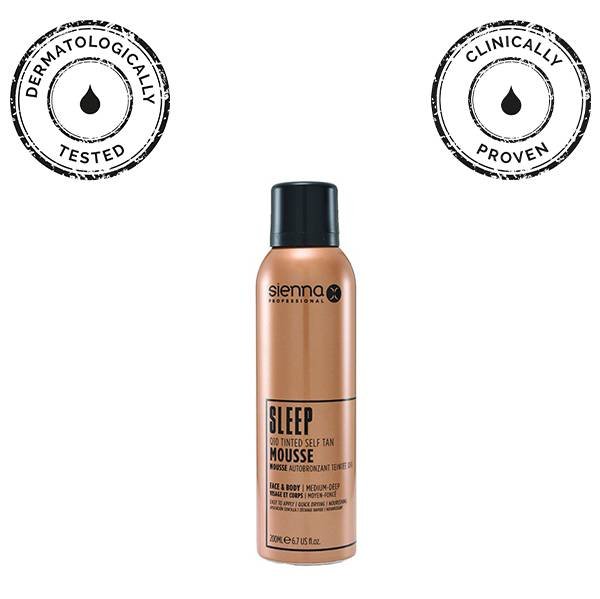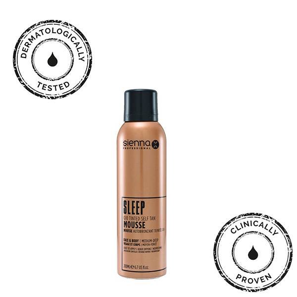 SIENNA-X SLEEP SELF TAN TINTED MOUSSE – tai naktinės savaiminio įdegio putos su Q10, sukurtos natūraliai ir tolygiai odos spalvai be saulės poveikio. Lengvos tekstūros putos greitai įsigeria, lengvai paskirstomos ir suteikia natūraliai atrodantį įdegį vos per 8 valandas.