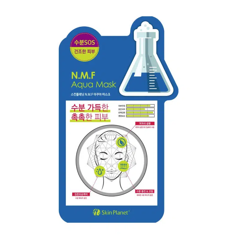 SKIN PLANET N.M.F AQUA MASK – tai intensyviai drėkinanti ir odą atkurianti lakštinė veido kaukė, sukurta sausai, dehidratuotai bei aplinkos veiksnių paveiktai odai. Formulė, praturtinta natūraliais drėkinamaisiais faktoriais (N.M.F.), padeda atkurti odos balansą ir suteikia jai spindesio.