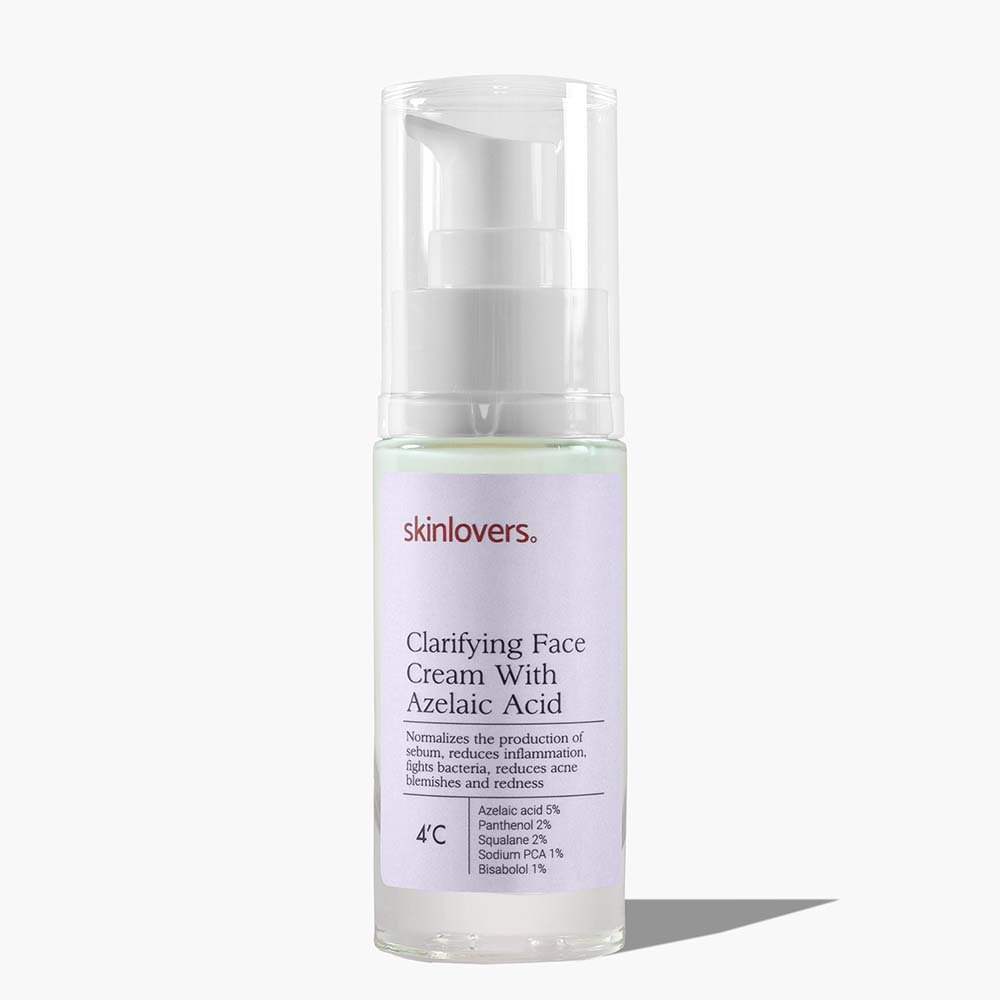 SKINLOVERS #4’C – veido kremas su 5 % azelaino rūgštimi, sukurtas riebiai, mišriai ir aknės paveiktai odai. Padeda mažinti bėrimus, paraudimus, spuogų paliktas dėmeles ir palaiko odos drėgmės balansą.