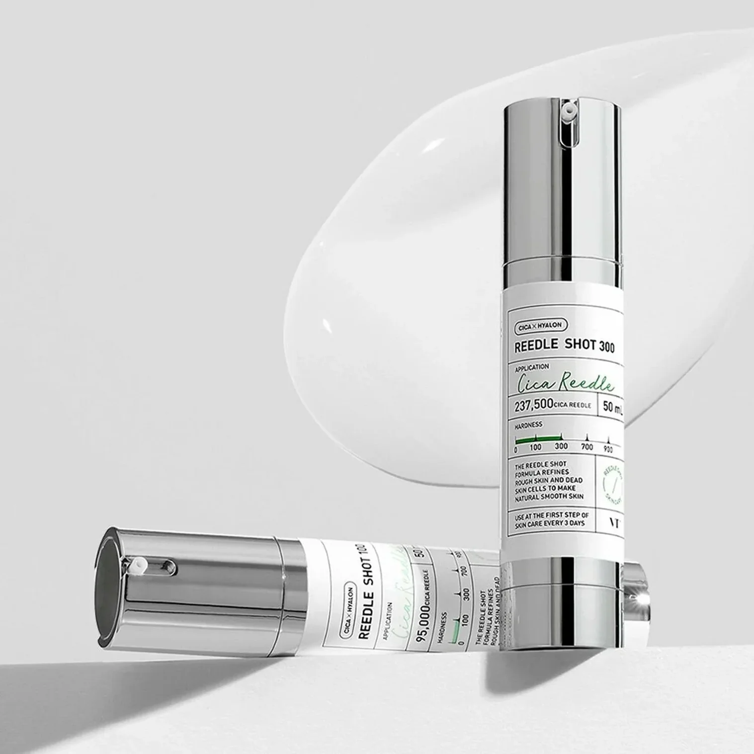 VT Cosmetics Reedle Shot 300 – intensyvesnio poveikio veido serumas-ampulė su mikroadatėlių technologija, sukurta tam, kad veikliosios medžiagos efektyviau pasiektų odą ir padėtų greičiau pagerinti jos būklę. Priemonė orientuota į drėkinimą, odos komfortą, raminimą bei apsauginio barjero stiprinimą.